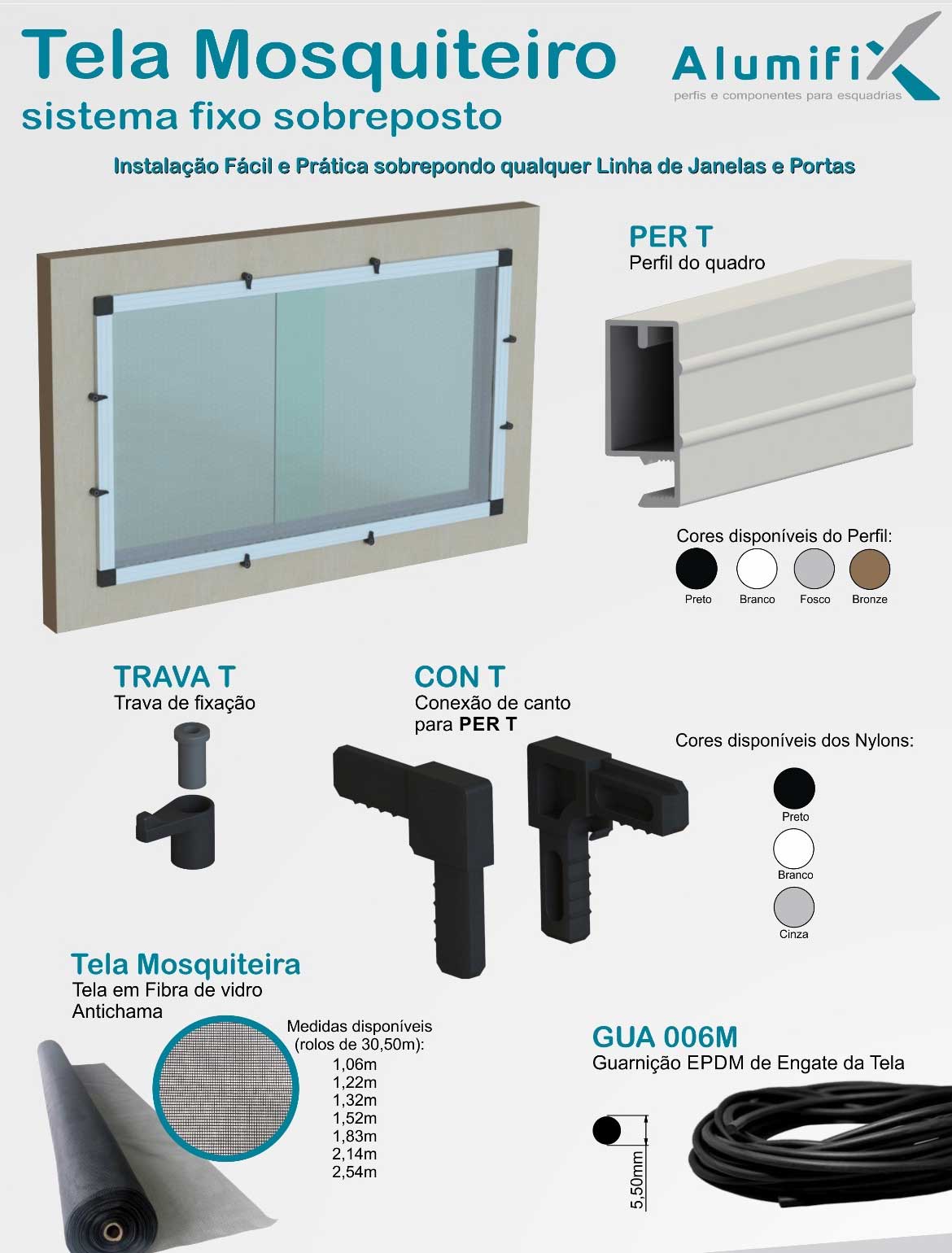 A Alumifix, uma empresa com mais de 25 anos de experiência no mercado, além disso, fabrica e fornece uma linha completa de perfis e componentes para esquadrias, incluindo diversos modelos de telas mosquiteiras. A empresa oferece opções apropriadas para cada tipo de janela ou esquadria.